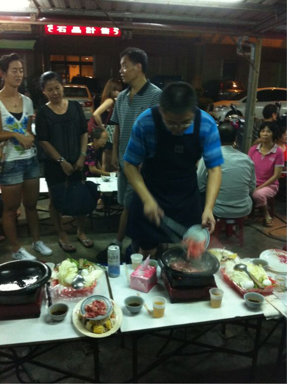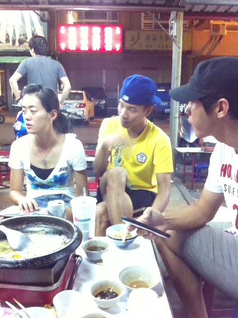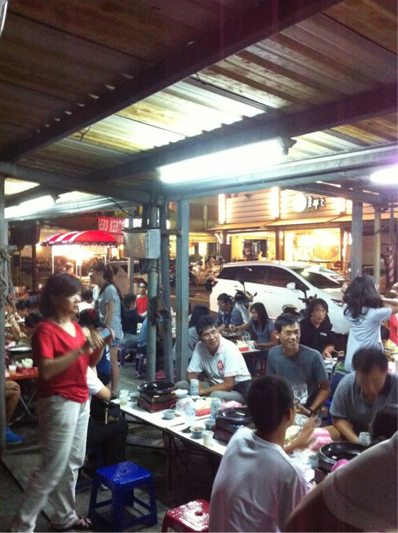 とりあえず鶏肉飯は注文できます。 大きな声で 「これください!(日本語)」(そしてメニューを指で指す) ま、なんとでもなるもんだわ。 この3日間、 1)ホテルが一緒 2)相部屋で一緒 3)みんな中国語が出来る 4)楽しい などの理由により香港チームと一緒に行動してます。 そして、何故だか、毎度おごってもらってます。 いや、払おうとしてるんですけどね。 「いいからいいから」と。 意地でも払おうと、ごねることもできるんですけど、 そこは侍魂を携えた日本男児、潔く大きな声で 「謝謝」 わりとすぐに引き下がります。 ところで、香港は広東語、台湾は、、、何語か知らんけど、香港の人は普通語(プドンフアン(?)、マンダリン)で話しかけてます。 同じ中国語でもちょっと違うらしく、お店で注文しても微妙に伝わってなかったりします。 だいたいわかるんだけど、違うところもあるらしい。 さ、ここで、旅でもっとも重要な言葉のレッスンです。 ウオ ホウ トォ ンゴ (広東語) ウオ アー ラ(普通語) 意味は 「おなかすいた!」 晩ご飯は排骨拉麺でした。 麺はどう見ても手打ちなう、って感じで、うにょうにょしたうどんみたいな麺。 スープもコクがあって、うまいのなんの! そしてとろけるお肉!骨までくにゃくにゃです(僕の骨じゃなくて) 最後はステキな夜の街をお楽しみください。 あ、練習、してますよ。 本日、朝昼晩の三回です。 それと、ユージョン来た。 ミノも来る。 相変わらず速いわー。 |