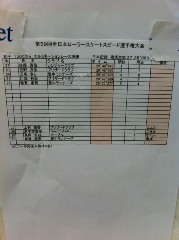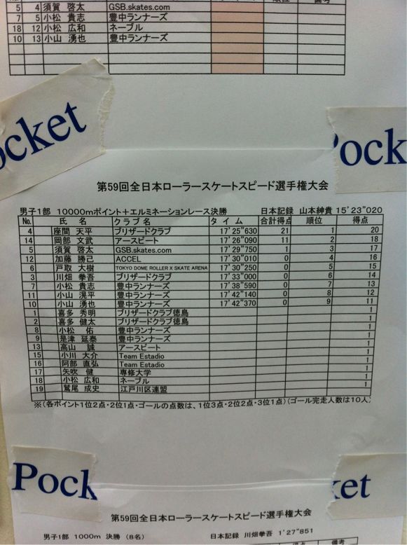【日 時】 平成24年1月8日(日) 午前9時30分スタート 4位でした。 当然と言えば当然だけれど、練習が足りてません。 レースになってなかった。 最後の3周で岡部選手と逃げた時は「勝っちゃうかも」と思ったけれど、まあ足りませんでした。 【気持ち】 途中、単独で走ることが何度かあったけれど、逃げたわけじゃなくて、僕のペースは変わらないのに、後ろが落ちてただけ。 あえて落とす意味が分からない。僕は楽でよいけれど。 自分の結果は棚に上げて言いますけども、競技する気あるのー? 「先頭を引きたくない」という気持ちはわかるけれど、それはみんな同じ。 「先頭にでない」「出ても2、3歩で代わる」「極端にペースを落とす」どれもルール違反ではないけれど、何のためにレースしてるの?? 向上とは反対の方向に向かっていると思います。 来年もこの状態だったら、僕は向こう10年もトップで勝負できます。 【素敵】 今回、非常に良かったのは、2位になった加藤克己選手のブレイクとそれに着いて行った岡部文武選手。 結局、レースを作るにはいたらなかったけど、何度も何度もブレイクをかけていたのが印象的でした。その上での2位だから素敵です。 僕もあの加速が欲しいところ。 ほんもくさんとたくみんの参加はとても良かったと思います。 今まで続けてきたことを変えて、より大きな壁にチャレンジするというのは本当に勇気がいります。ナイスチャレンジでした。そして来年も期待しています。 それと、出ている以上は誰にでも日本チャンピオンの可能性があります。来年はぜひ「もしかしたら日本チャンピオン」を目指してください。 【女子】 女子の吉野選手と後藤選手は、どちらもよい走りでした。 結果は吉野選手に軍配があがったけれど、男子のブレイクには必ずどちらかが食らいついていて、互いに「負けない!」という気合いが伝わってきました。 それから女子と男子は本来別のレースです。 便宜上一緒にスタートしているので、ペース維持でローテーション組んでる時は構わないと思うけれど、男子のブレイクを追いかけてる状況で女子選手に先頭を引かせるのは、なんか違う気がします。 そういう時は男子選手がどんどん前に出てこないといけない。 【目標は?】 レースだから、結果が一番大事なのは言うまでもありません。 日本で勝つのが目標ならそれだけでOKです。 でも世界で勝ちたいなら、「どういうレースで」勝つかというのも、0.2ポイント差くらいで大事です。 特に、選考のかかってない大会では自由がきくのだから、「ここで行けば勝てるかも、もしくは撃沈してオミットかも」という勝負もアリだと思います。 今回そういうレースをしたのは加藤選手だけでした。 その意味で非常に残念なレースでした。 そしてそれ以上に僕の結果が残念でした(泣)。 |