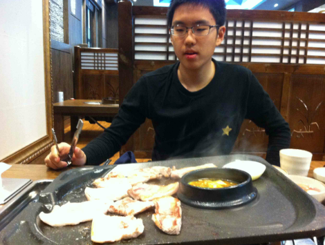今朝は30分ラン後の30000に始まり、 6000リレー(一人2000m)で終了。 何故か僕らだけ3人チームで、休みゼロ。。。 午後は10000のあと15000、、、、だったんだけど、へたれました。たぶん10000くらいしか走れてない。 うーんまだまだだなぁ。 のあと16000リレー(一人4000m) のあと5600リレー(一人1400m) リレーがまた楽しいんだけどしんどいのです。 2周交代の2周目、足止まるのです。 というわけで57400mなので574円寄付することになりました。 2928円に足して3502円となりました。 ところで、お昼はサムギョプサルでした。 韓国来ても、高そうだから絶対入らないだろうなーと思ってたんだけれど、奢られてしまった。高校生に。 本当は家に招待されてたんだけど、「練習があるから行けないよ」って言ったらわざわざ来てくれた。なんていい子!! しかしこのところ後輩やら年下やらに奢られてばかりです。 うーむ先輩風はいつになったら吹かせられるのか。。。 |