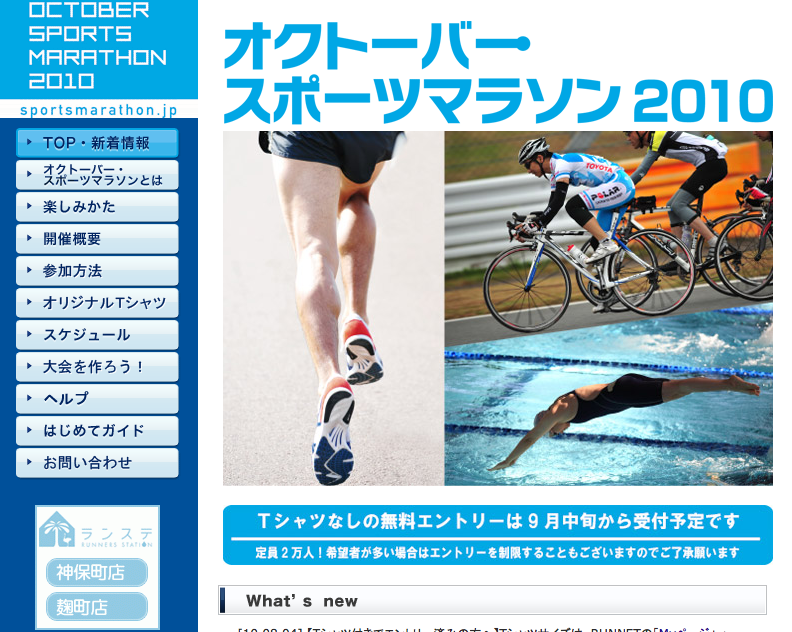ジムの帰りにふと見つけたチラシ。 オクトーバースポーツマラソン サイトはコチラにありました。OSM 自転車かランかスイム、どれでもいいので、10月の一月にこなした距離を競うイベントのようです。 「競う」というよりは「みんなでやればつらくない」が本主旨の気がしますが。 残念ながらスケートはありません。(別に申告してもいいと思うけれど) ランは最近某チームで流行ってるようですので、いかがでしょうか。(笑) マキシモもやるかしら。 これのスケート版をやりたかったのだけど、ウェブの腕が足りないものでいかんともしがたい。 |