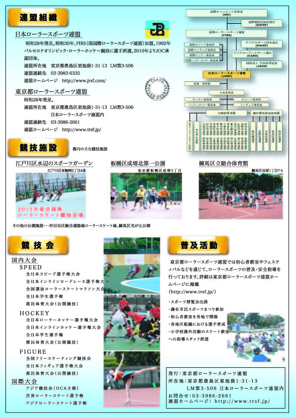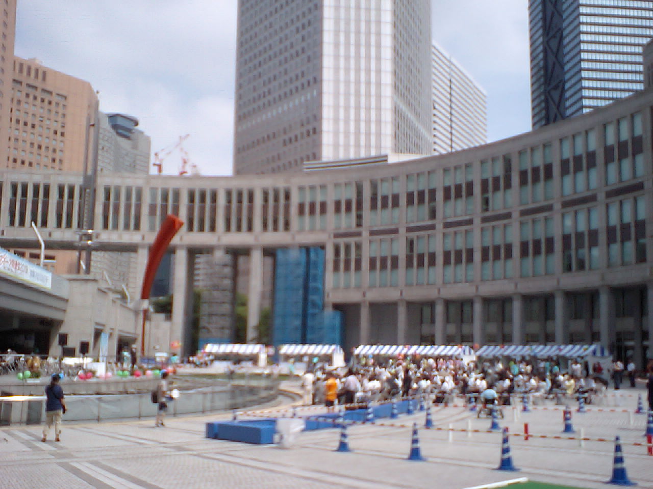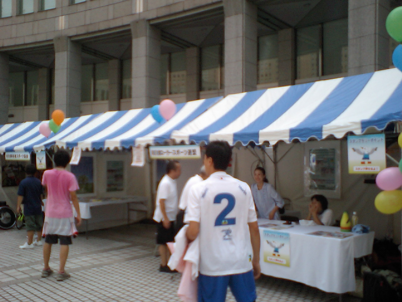 2013年、今から3年後の国体は東京で開かれます。 その国体でスピード競技は公開競技として実施される予定です。 会場は江戸川水辺のスポーツガーデンです。 正式競技への第一歩! さる7月31日、東京開催決定記念イベントが、都庁前の広場で開かれました。 イベント自体は2時間だけですが、数百人が来場して、各競技のブースやデモを見ていました。 都連ではチラシを制作して、ROLLER SKATES PARADISEと一緒に配布しました。 「カッコイイ」「難しそう」「どこでできるの」など、興味を持ってもらえたようです。 競技を知らない人から直接感想を聞けたのも良かったですね。 色が変だな。。。 |