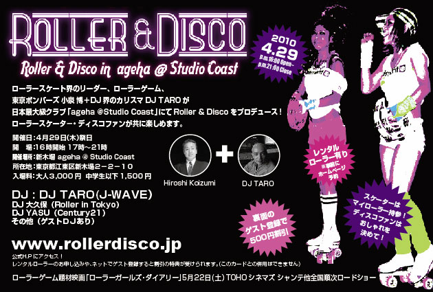 雨中のスピードスケーターから、クラブの盆ダンサーへ。 盆踊り、、、はしなかったけど、ホールに入ってみたら意外にすごく面白くて踊ってた〜♪ 一応はお手伝いで行ったんだけれど、なんか雰囲気がすごく楽しくてついつい紛れ込んでました〜。 80'sかかりまくりで、MUSIC+の超々拡大判みたいなDJプレイで、なんか血が騒ぐ。 9時には終了予定だったこともあってか、ちびっ子連れの家族で来てるお客さんも多くて、なんか健全な感じ(笑)。 幼稚園児から70歳くらいのおじいちゃんまで、しかもみんなファンキーという不思議な空間で、遠近、四国からも来て9時間かけて帰りますなんて人もいて、あぁーみんなほんとにローラーが好きで好きで楽しくてしょうがないんだなぁと。 ところで、おじいちゃん世代のスケーターはマジでかっこいい。 紫の帽子や、細身のシルエットのジーンズ。カスタマイズされたローラーシューズ。 すげー、なりたい。そんな爺に。 というわけで、普段のシリアスな練習から対局の「楽しむためだけの(しかも極めて徹底的に)ローラー」にちょっとカルチャーショックだったのでした。 またやったらいいなー すごく楽しいなぁー 準備をしたスタッフ関係者は本当に大変だったようだけど(笑)。(お疲れさまです!) でもまたやれたらいいなー 携帯なのでちょっと画像がよろしくないけれど [高画質で再生] ROLLER & DISCO IN STUDIO AGEHA @ STUDIO COAST [無料blog] [高画質で再生] ROLLER & DISCO IN STUDIO AGEHA @ STUDIO COAST2 [レンタルサーバー] [高画質で再生] ROLLER & DISCO IN STUDIO AGEHA @ STUDIO COAST3 [ソーシャルネットワーキング] ところで午前中は熊谷でTEISSでした。 ついに生徒30人を超えて巨大な集団になってました。 雨の中だけど、やる気満々で、みんな真剣にスケートをやっていて、この熱気はこれから何か起こりそうな、そんな予感がしました。 都連のイベントもそろそろ始まります。波を起こしていくぞー! |
